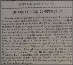 My dissertation was concerned with the transnational networks of the British co-operative movement from 1870 to 1920. In particular, I wished to understand the development of the international co-operative movement from the British perspective. Rochdale was not the first co-operative society but proved to be the most stable, which resulted in it being widely emulated. This, in conjunction with Britain’s fundamental role in the establishment of the International Co-operative Alliance (ICA) in 1895, meant that London and Manchester acted as a hub for the wider international movement.