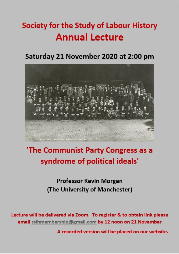 Join us via zoom this weekend as Professor Kevin Morgan delivers the Society for the Study of Labour History’s annual lecture for 2020.