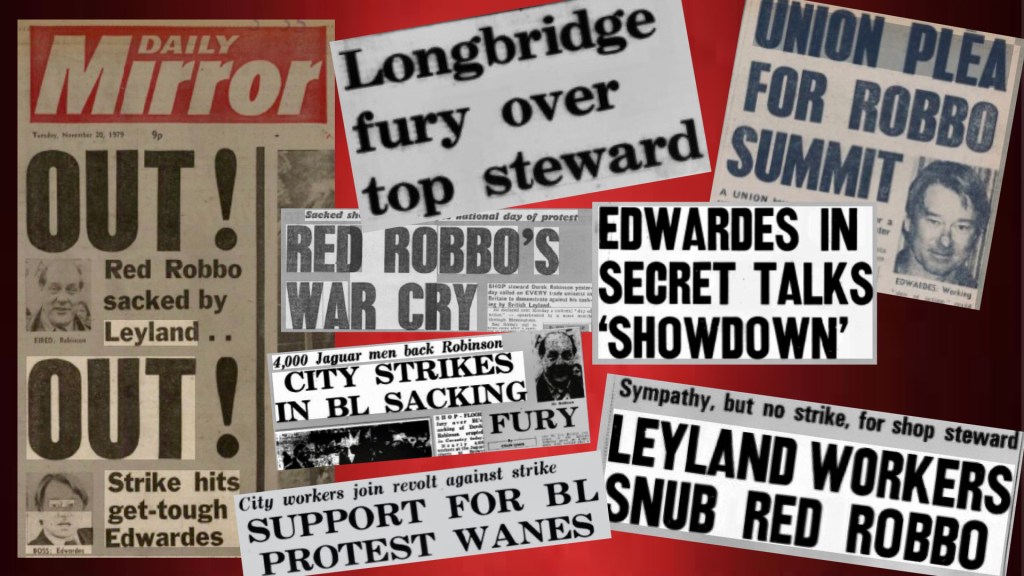 In common with many other leading trade unionists at Longbridge at the time, Robinson was a long-time activist in the Communist Party of Great Britain. Though often dismissed by the tabloids as a militant and a firebrand, in fact he wanted to make British Leyland successful, and trod a careful political line, supporting changes to simplify the company’s piecework system, the root cause of numerous disputes, in the face of opposition from members of the then Socialist Labour League, who were strongest at BL’s Cowley plant.