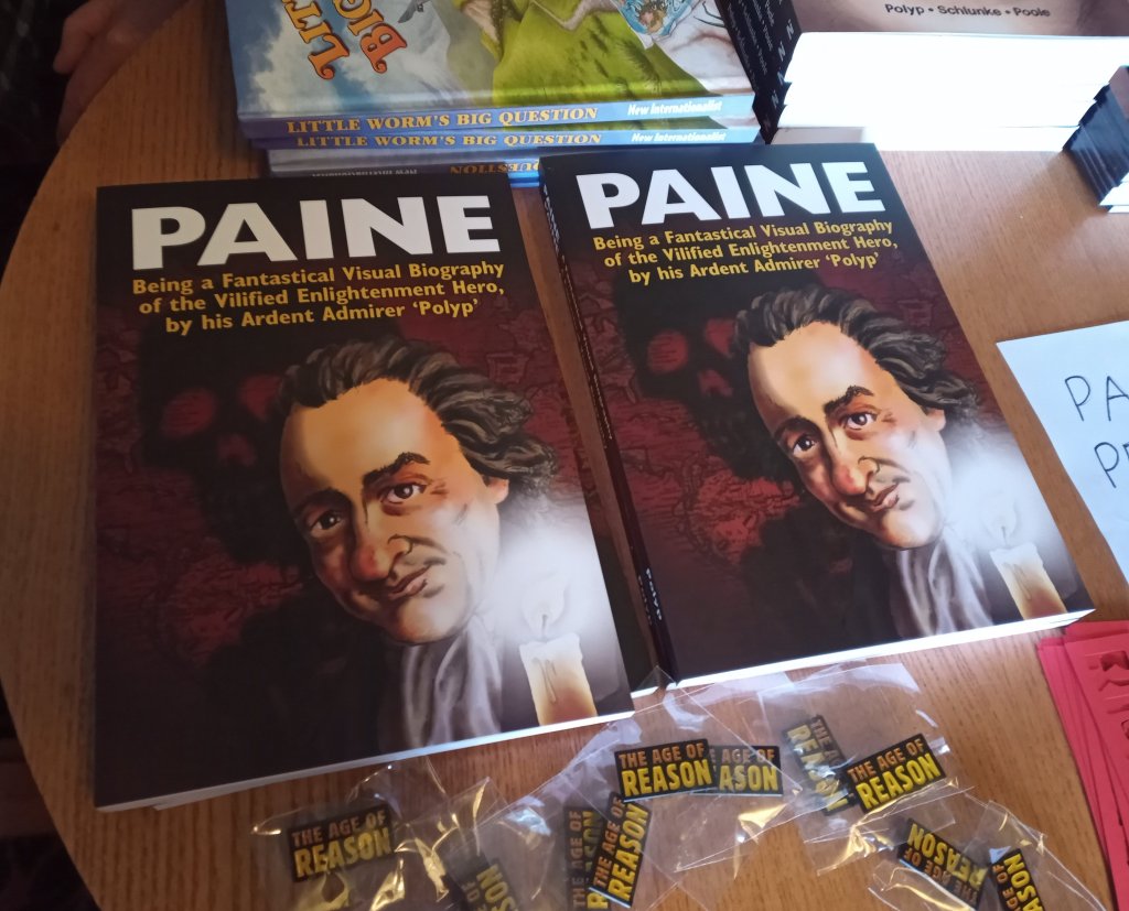 Over the past year, the political cartoonist and graphic artist Polyp, otherwise known as Paul Fitzgerald, has been working on a graphic biography of this extraordinary character, whose obituary in The American Citizen read, in part, ‘He had lived long, did some good, and much harm’. The result of his labours is now out in the world, and is itself a cause for celebration. Paine: Being a Fantastical Visual Biography of the Vilified Enlightenment Hero, by his Ardent Admirer ‘Polyp’ quite lives up to its title.