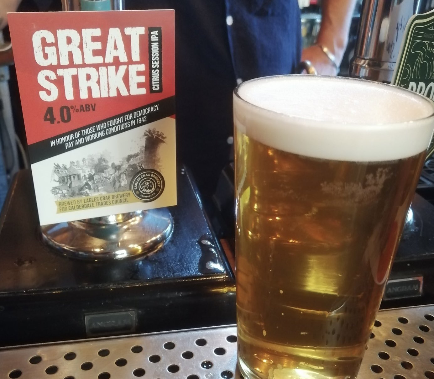 At the Grayston Unity the crowd also enjoyed the superb new Great Strike beer, brewed specially to mark the commemoration by Todmorden brewery Eagle’s Crag. This superb commemorative ale is currently available in the Grayston Unity, Meandering Bear, and Big Six Inn in Halifax, as well as a range of other local hostelries (including the Trades Club and Fox and Goose in Hebden Bridge, the Golden Lion and the Ale House in Todmorden and Bridge Street Beer House in Burnley). Special thanks are due to Michael Ainsworth and his staff at the Grayston Unity for supporting and hosting the event, and for first suggesting Eagles Crag as the ideal brewers for a commemorative beer.