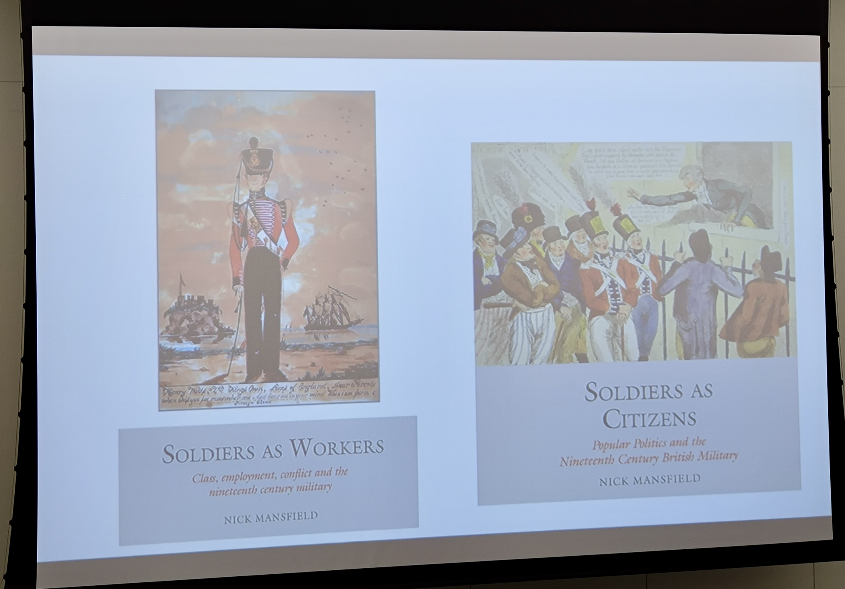 Above: Professor Nick Mansfield, the books which formed the basis of his lecture, and a contemporary image. Photos: Janette Martin. Click for larger images.