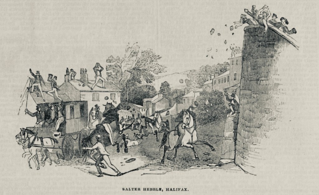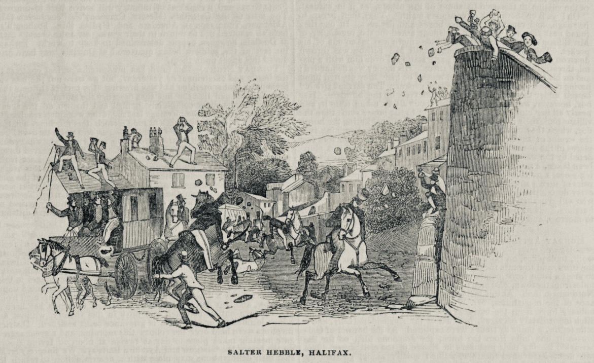 The action during August swept northwards from the potteries into Cheshire, Lancashire, then the West Riding. By 15 August, between 20 and 30,000 strikers were present in Halifax, and the authorities must have felt they had lost the town. Special constables, where they could, seized bludgeons from strikers. When soldiers seized some strikers, others attempted to free them and were met with gunfire and fixed bayonets. As at Peterloo and Tolpuddle, the conflict is resolved by oppression. Yet an audience would know that nothing will be the same, for the cost of suppressing the movement has left behind the bereaved and a political legacy.