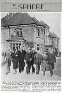 The politicians were clearly still in light-hearted mood on the Sunday morning, allowing in photographers from the less news-led publications to snap them in the grounds of the guesthouse. Both The Sphere and the Illustrated London News (5 March 1949) filled their front pages with a single image of the party leaders at play, and each carried a further full page of smaller photographs inside.