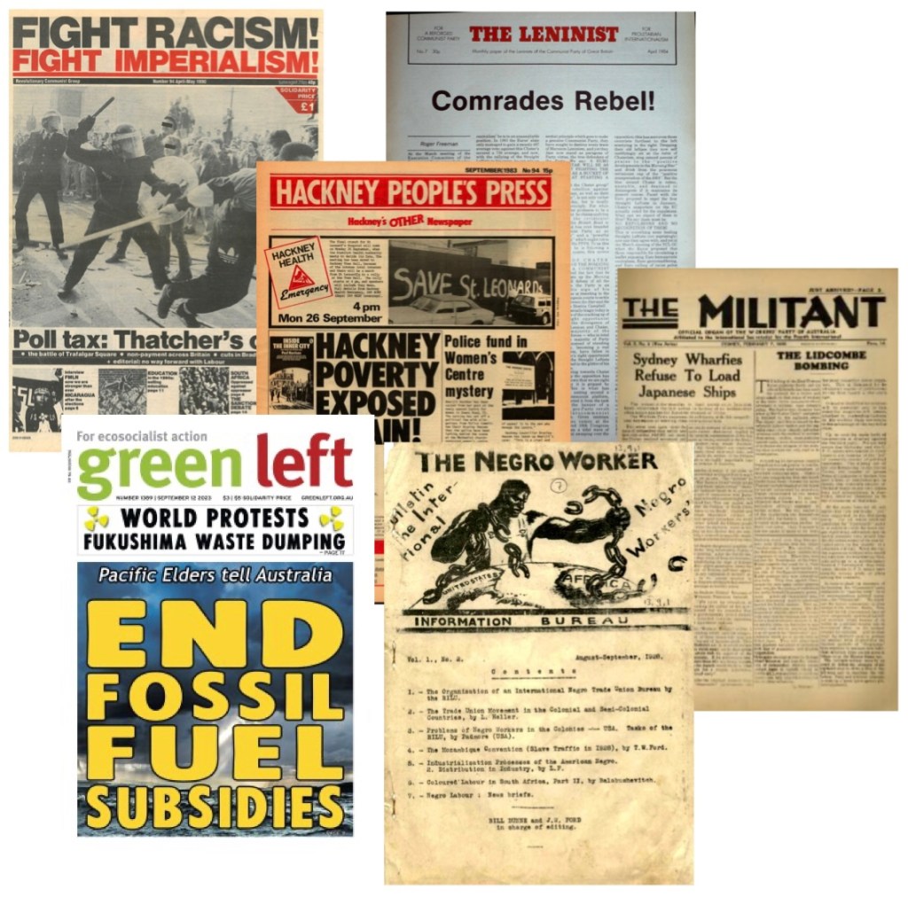 Although it is worth mentioning that it is not just activists who are making these radical collections available online. In certain countries, national and state libraries have digitised left-wing newspapers, journals, pamphlets and other ephemera. For example, Trove, the online platform of the National Library of Australia, has digitised the various newspapers of the Communist Party of Australia from the 1920s to the 1990s, as well as the newspaper of the Australian section of the Industrial Workers of the World (Direct Action) and Australia’s first Trotskyist journal (The Militant).