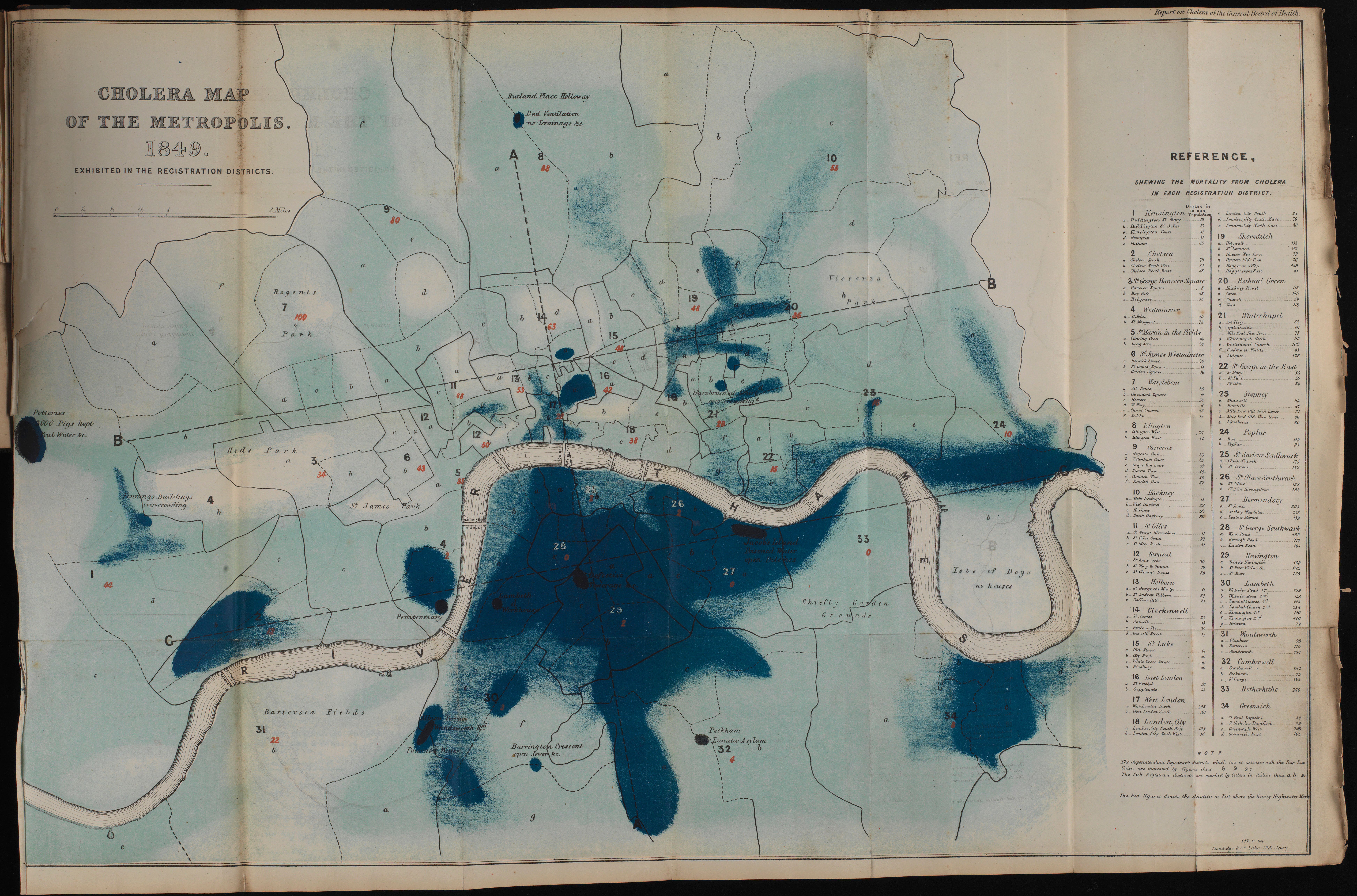 Histories of cholera in the mid-nineteenth century tend to focus on Dr John Snow’s discovery of the means by which it was transmitted and his removal of the handle from the water pump in Broad Street, London. You have only to google ‘John Snow cholera’ to find a wealth of material. There are accounts of the lives of Henry Hetherington, May Paris, Alexander Sharp and Joseph Williams on the Chartist Ancestors website. Local studies of the cholera epidemic include these for Sheffield, Lambeth and Mevagissey in Cornwall.