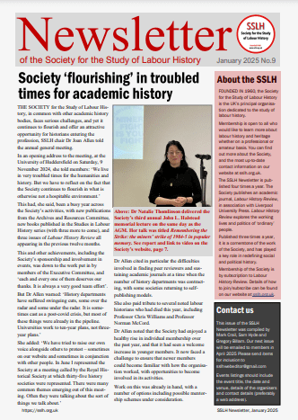 The January 2025 issue of our members’ newsletter is out now. If you are a member of the Society for the Study of Labour History, you will have received this in a PDF document by email. You can also download it from the Members’ Resources page here on the website.