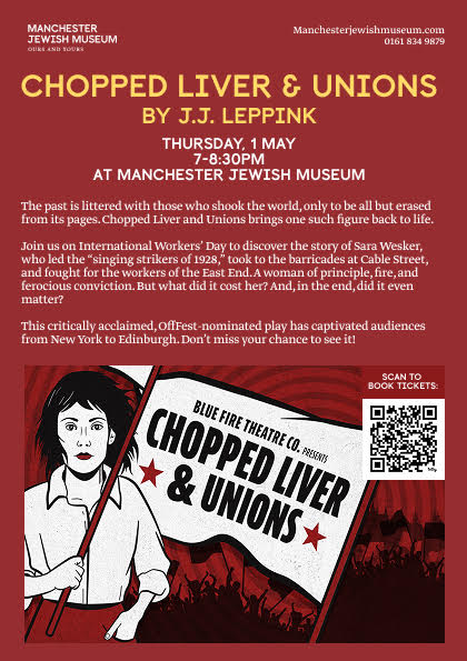 Manchester Jewish Museum is hosting a performance of the one-woman play Chopped Liver and Unions on Thursday 1 May to mark International Workers’ Day.
