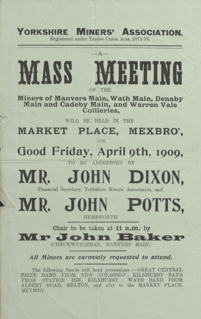 The two unions merged in 1881 into a single Yorkshire Miners Association which became a founder member of the Miners’ Federation of Great Britain (MFGB) in 1889. When the MFGB was succeeded by the more centralised NUM in 1945, the Yorkshire Miners’ Association became the Yorkshire Area of the NUM.