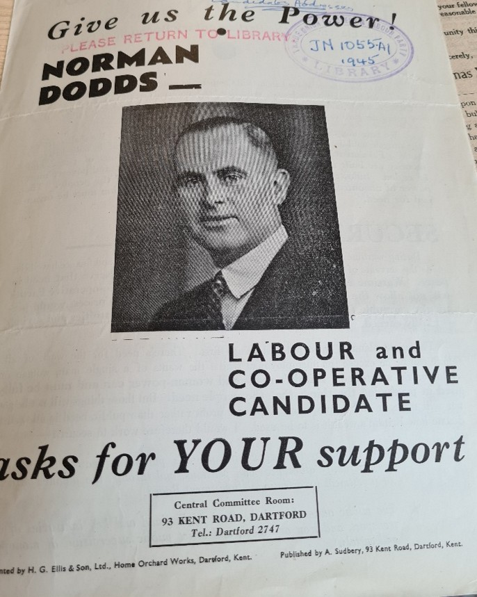 This was also the case for Norman Dodds, who had been the publicity manager for the Co-operative Wholesale Society and served on the management committee of the Co-operative Society in Dartford.10 Dodds would be elected for Dartford in 1945 by a significant majority, winning 61.5% of the vote compared with the 38.5% won by the Conservative Party candidate.11 Yet, despite his long involvement in the co-operative movement, he was elected on an address which prioritised Labour issues.