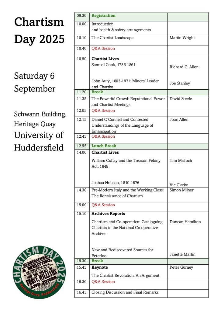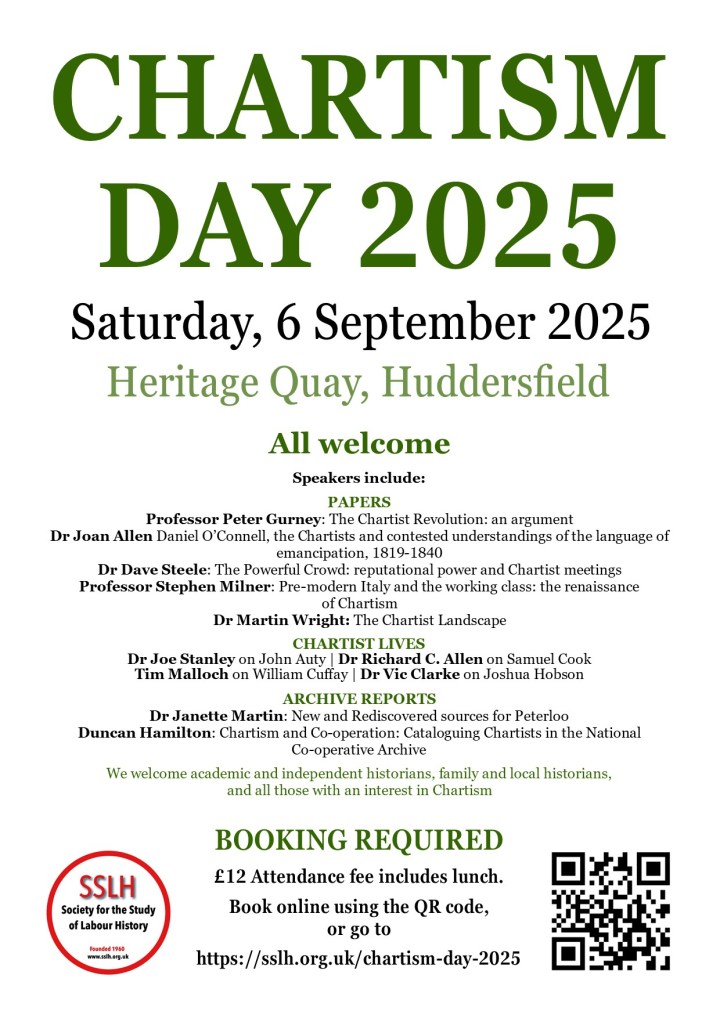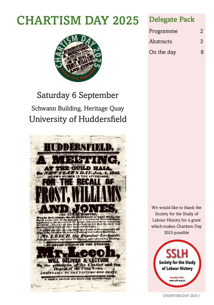 Chartism Day 2025 will take place on Saturday, 6 September at Heritage Quay, University of Huddersfield.