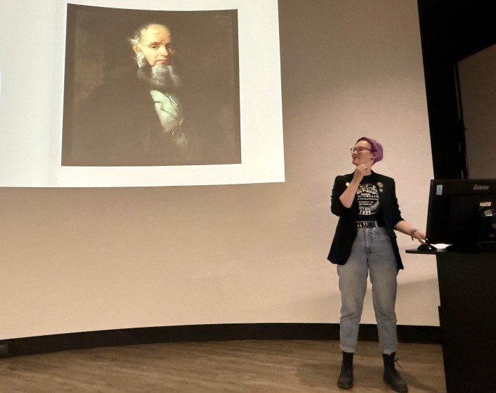 Dr Janette Martin talked about two recent additions to the John Rylands Library connected with the Peterloo massacre of 1819. The first was a white-metal Peterloo medal, now black with age, struck as part of the fundraising activities for the survivors. Dr Martin was able to demonstrate an interactive 3D representation of the medal (see below), and to show a replica of the medal made at the John Rylands Library. The second archive acquisition was a volume of pamphlets and other printed material compiled in 1908, some of it previously unknown. The materials shed light on an earlier attempt to rebuild the Henry Hunt Memorial first erected by the Chartist movement in Manchester but subsequently demolished. Although the committee’s fundraising efforts were unsuccessful, they did lead to the creation of a plaque, now held at the Museum of Science and Industry in Manchester.