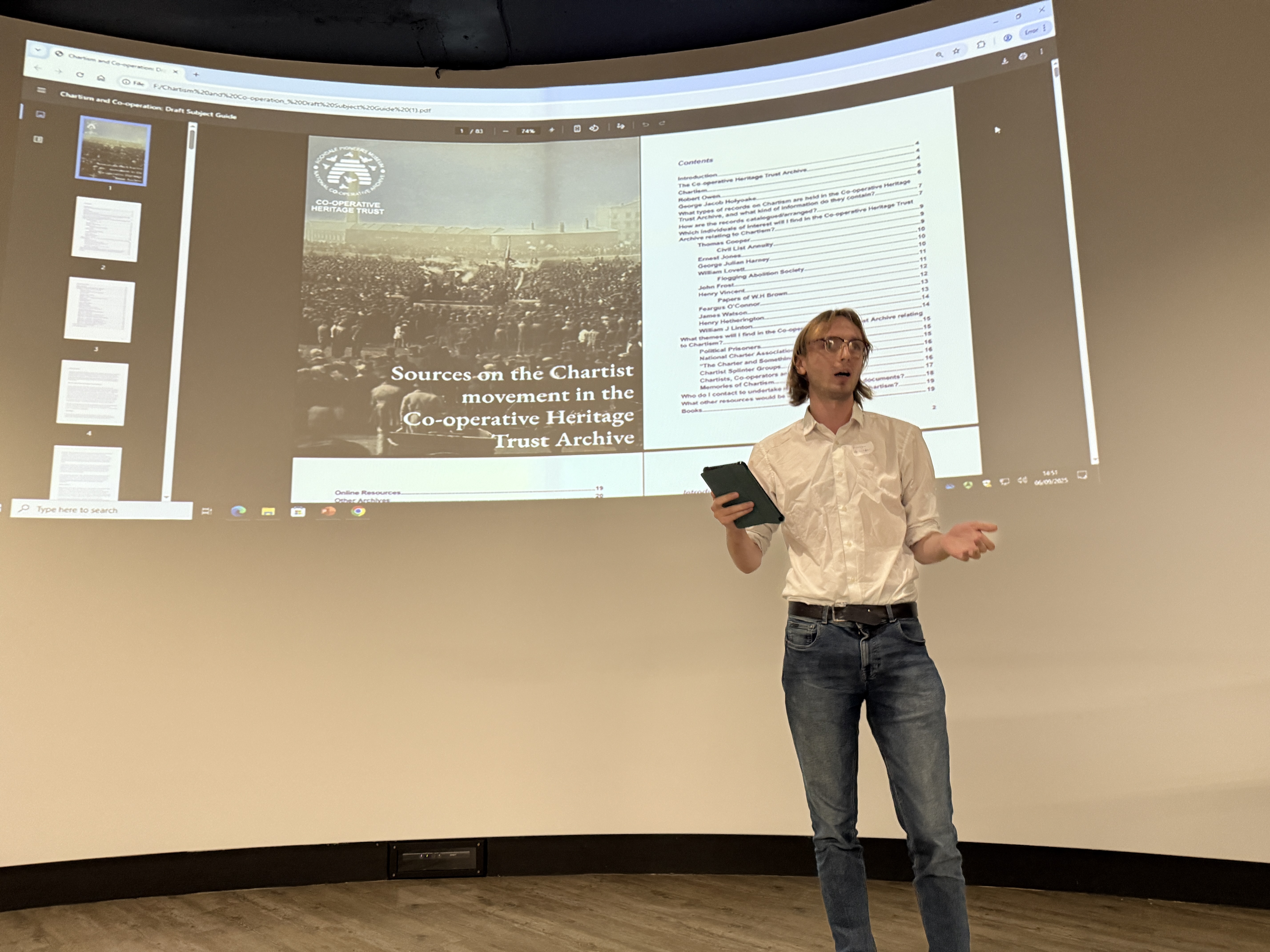 Duncan Hamilton reported on a project undertaken with the Co-operative Heritage Trust to produce a catalogue and guide to Chartism in the National Co-operative Archive. The catalogue includes brief biographies of a number of prominent individuals, including the Chartists Ernest Jones, Thomas Cooper, Henry Hetherington and W.J. Linton, a guide to Chartist ‘splinter groups’, a section on ‘the Charter and something more’ and another on ‘memories of Chartism’, often drawing on obituaries in the later co-operative movement press. The Chartism subject guide is available here on the Co-operative Heritage Trust website.