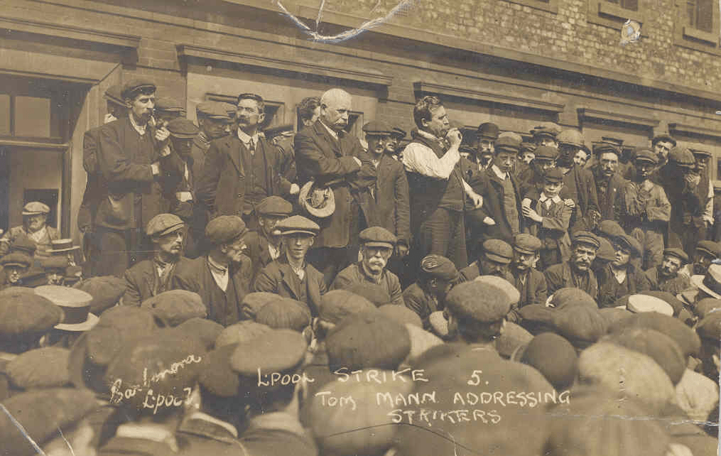 1911 was a watershed moment for the city’s working classes. Liverpool was at the centre of a series of ‘interwoven strikes involving at one time or another every section of transport workers in the port’, culminating in a general strike in early August. On 31 May 1911, a ‘monster demonstration’ was organised by the Transport Workers’ Federation at St George’s Plateau, as supporters marched from one end of the city to the other in support of strike action. Key figures in the movement, including Tom Mann, Will Thorne MP, Ben Tillett, and Havelock Wilson, delivered ninety-minute speeches. St George’s Plateau was a key organisational site for the city’s nascent trade union movement. The ubiquity – and indeed the centrality – of its demonstrations underlined the increasing strength of the city’s workers. In June, Liverpool’s seafarers went on strike and were soon joined in rank-and-file solidarity action by the city’s dockers. Reciprocal joint action was the order of the day. Liverpool’s waterside workers had effectively shut down the docks and enjoyed total control for a short period.